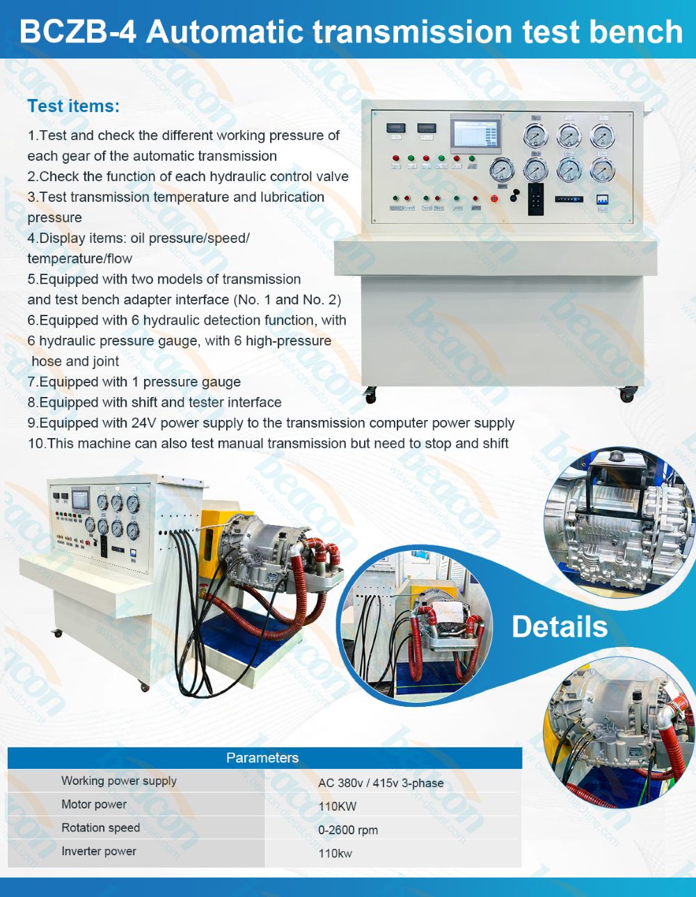 Испытательный стенд для автоматических трансмиссий BCZB-4 может тестировать все виды трансмиссий ZF, Allison и т. д