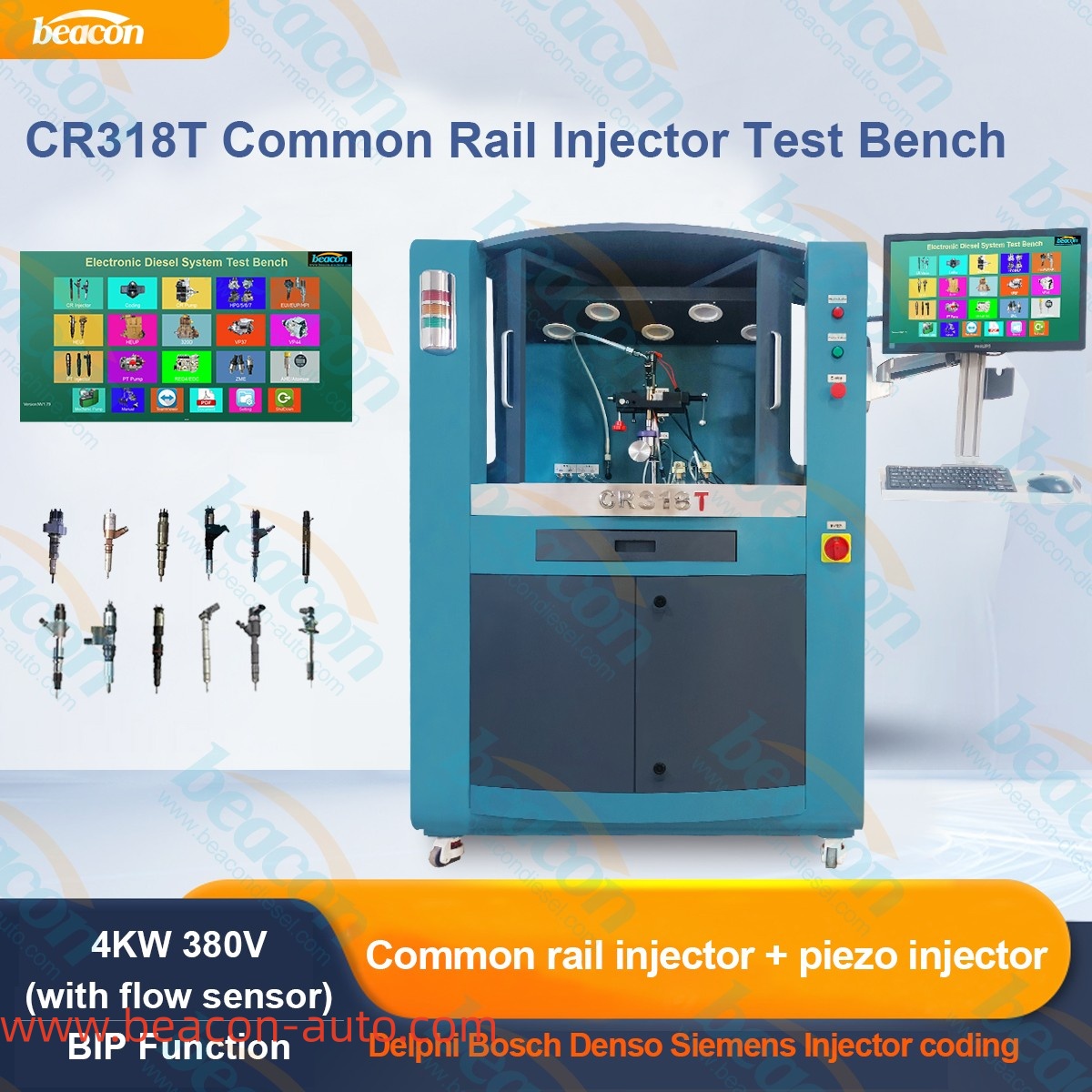 Стенд для тестирования форсунок Common Rail CR318T, предназначенный для проверки форсунок Common Rail и пьезофорсунок с функцией BIP и кодирования форсунок