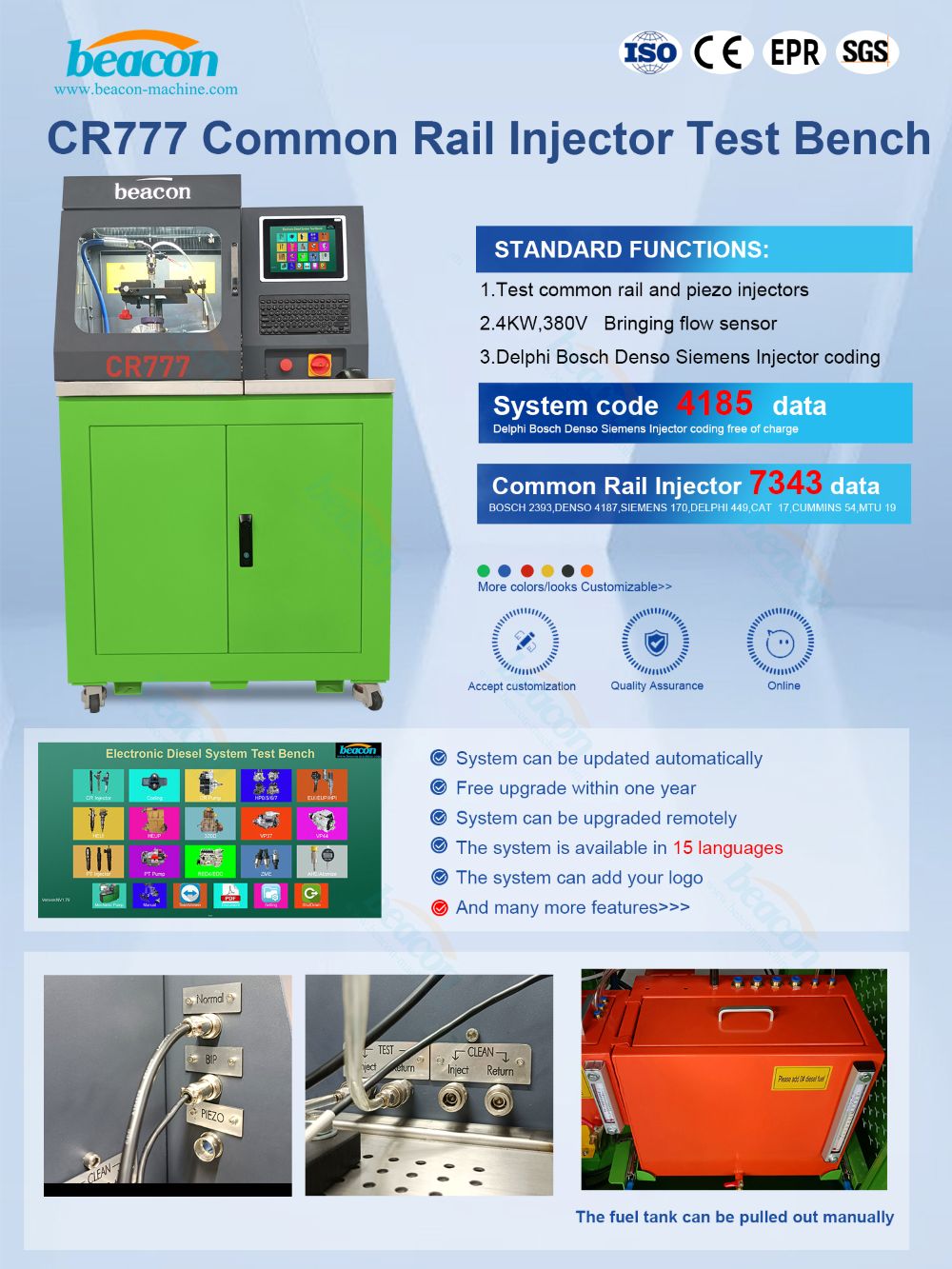 Испытательный стенд для форсунок Common Rail CR777 может тестировать все виды форсунок Common Rail и пьезоэлектрических форсунок с функцией BIP, а также выполнять функцию кодирования форсунок