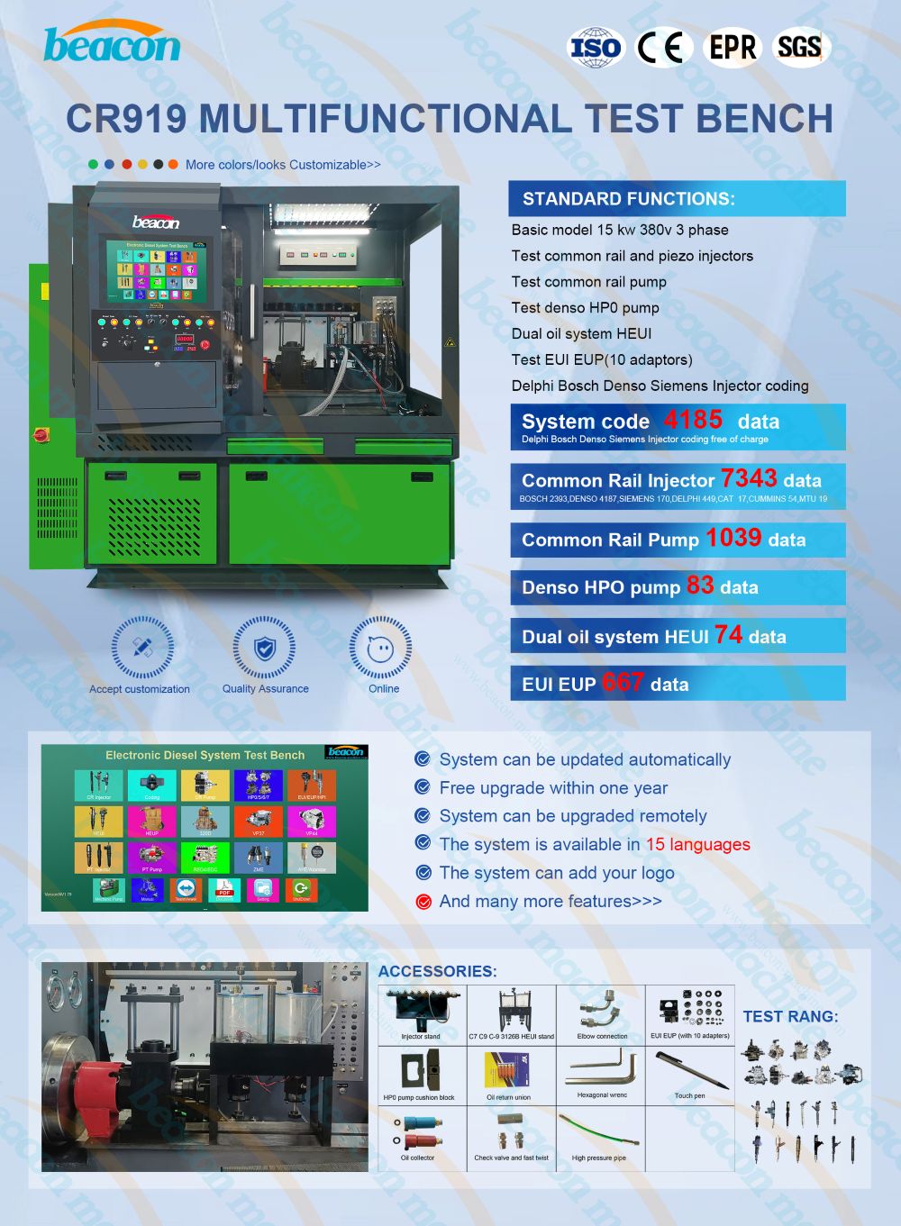 (4) Он может тестировать инжекторы Common Rail среднего давления HEUI и насосы привода (опционально);