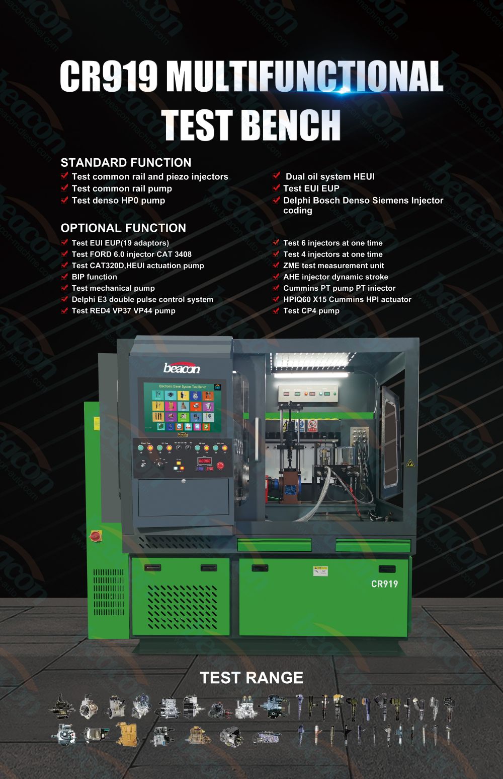 CR919 — многофункциональный испытательный стенд для насос-форсунок Common Rail и механических насос-форсунок, EUI EUP HEUI, PT и т. д.