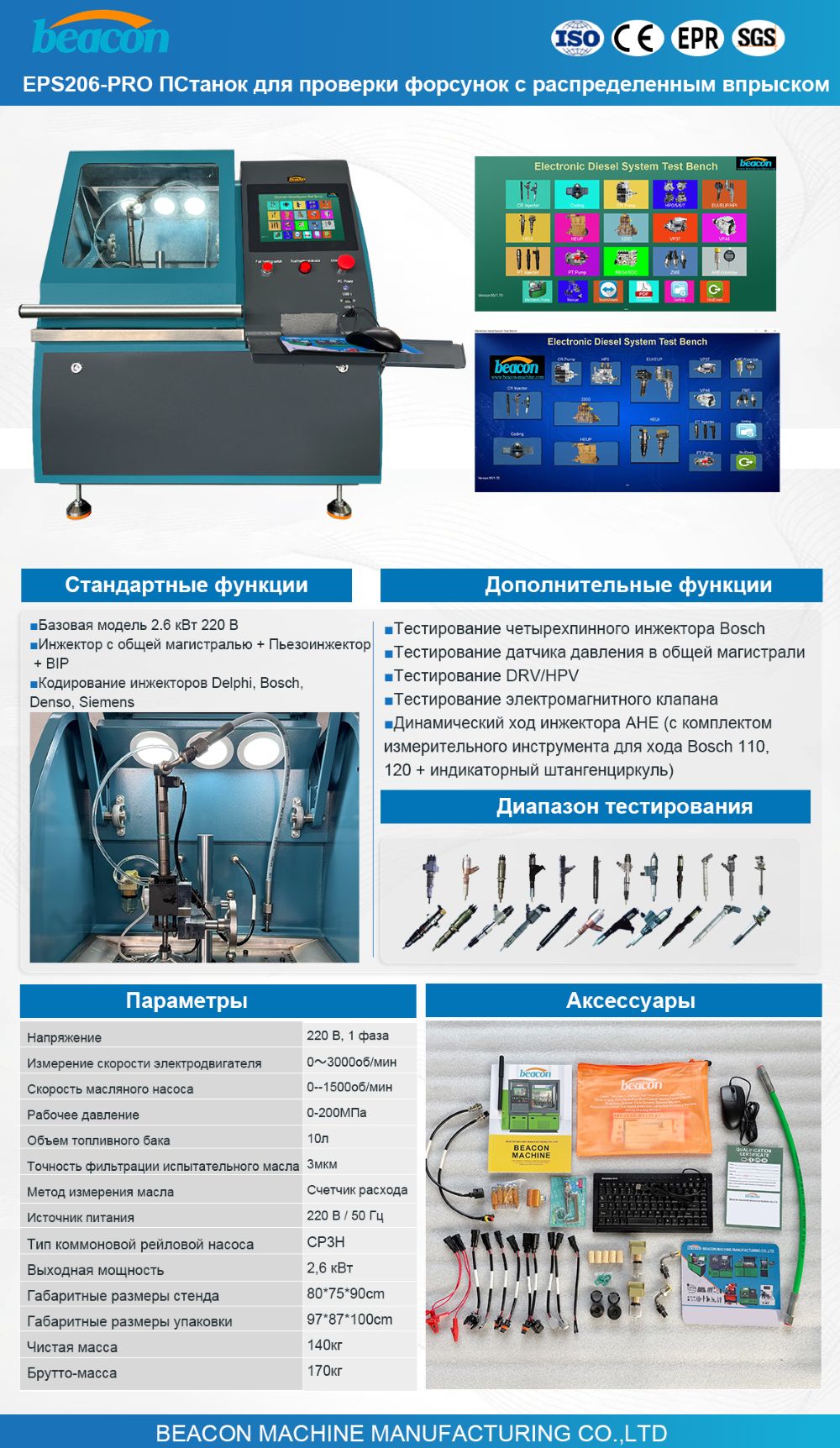 Испытательный стенд для форсунок Common Rail EPS206 PRO может проверять все виды форсунок Common Rail и пьезоэлектрических форсунок Bosch, Denso, Delphi, Siemens и т. д., а также выполнять функцию кодирования форсунок