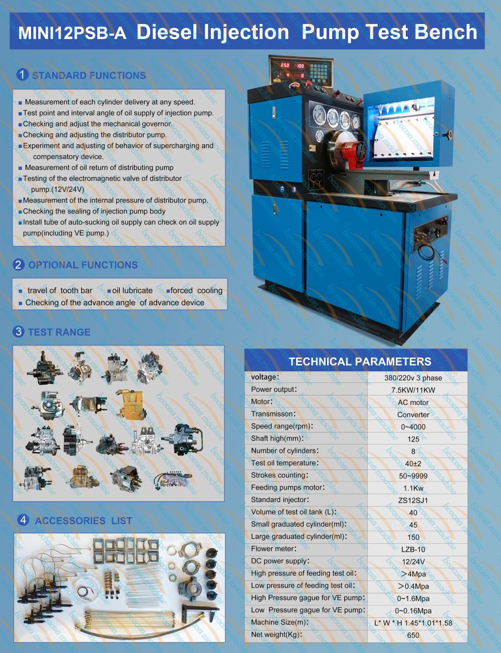 Испытательный стенд для дизельных инжекторных насосов MINI12PSB-A имеет 8 цилиндров и может проверять все виды механических насосов, насосов EURO II, традиционных насосов, линейных насосов и роторных насосов